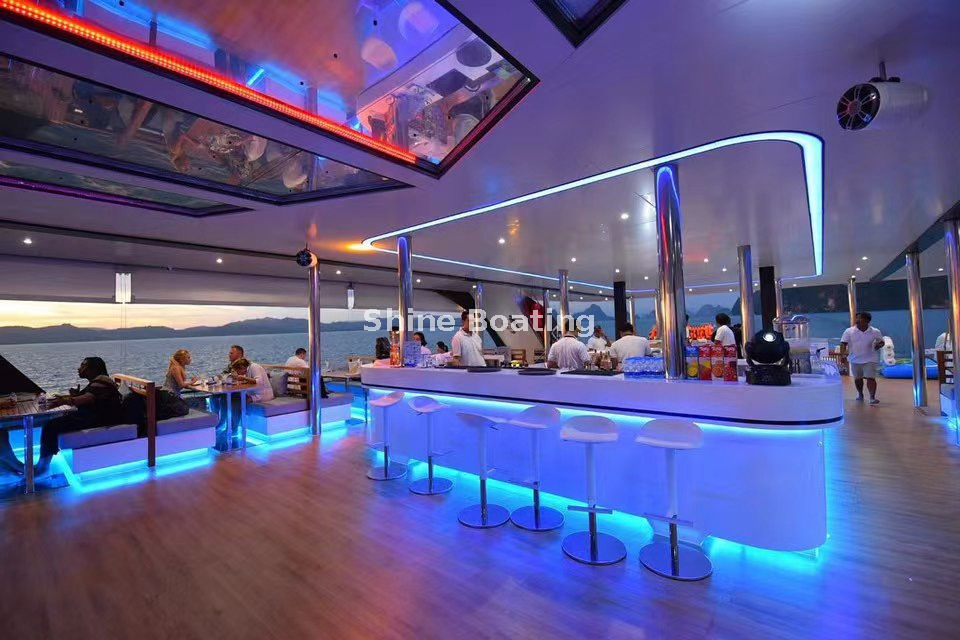 *Spacious Double-decker Layout: The expansive two-deck design creates ample room for seating, entertainment zones, and event setups, accommodating large groups for parties, sightseeing, and corporate gatherings.